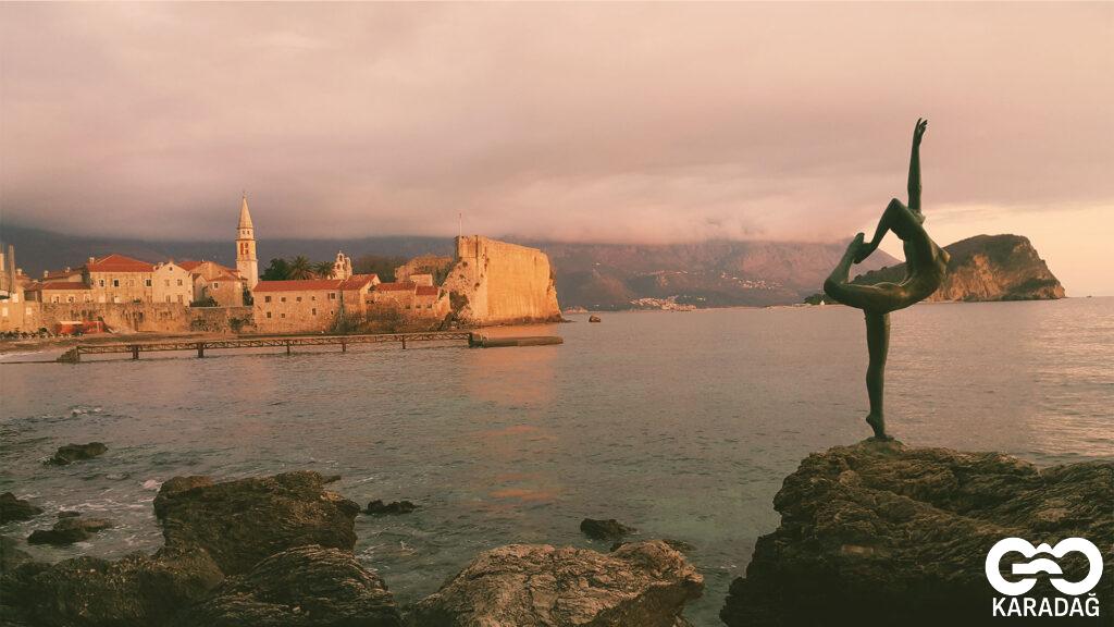 Eski Şehrin ana kapısının bulunduğu meydandan denize doğru ilerleyip, Avala oteline ait havuzun altından geçen yolu takip ederek Mogren plajına giden patikaya ulaşabilirsiniz. Bu kayalara açılmış patikaya geldiğinizde ilk dikkatinizi çekecek şey hemen denize bakan tarafta ve Budva’nın sembolü haline gelmiş olan balerin kız heykeli olacak.
