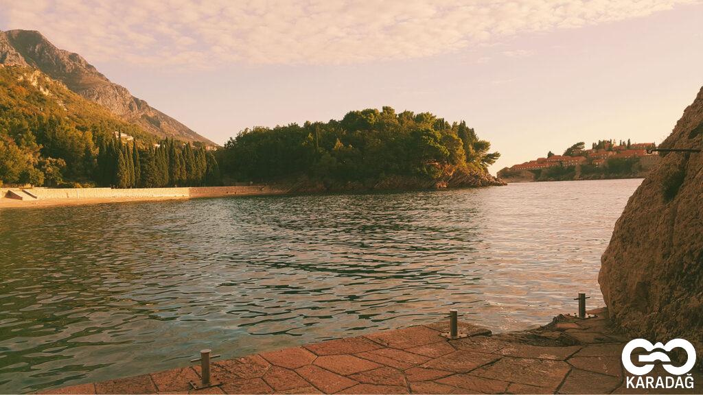 Bu koylarda bölgenin en eski zeytin ağaçlarının yanında dünyanın her bir yanından getirilmiş diğer türdeki ağaçlarla dolu korulukların arasından geçerek bir anda karşınızda bulacağınız heybetli görüntüsüyle Sveti Stefan’a ulaşabilirsiniz.