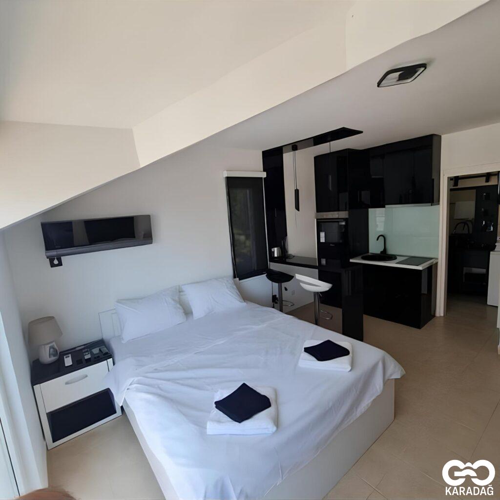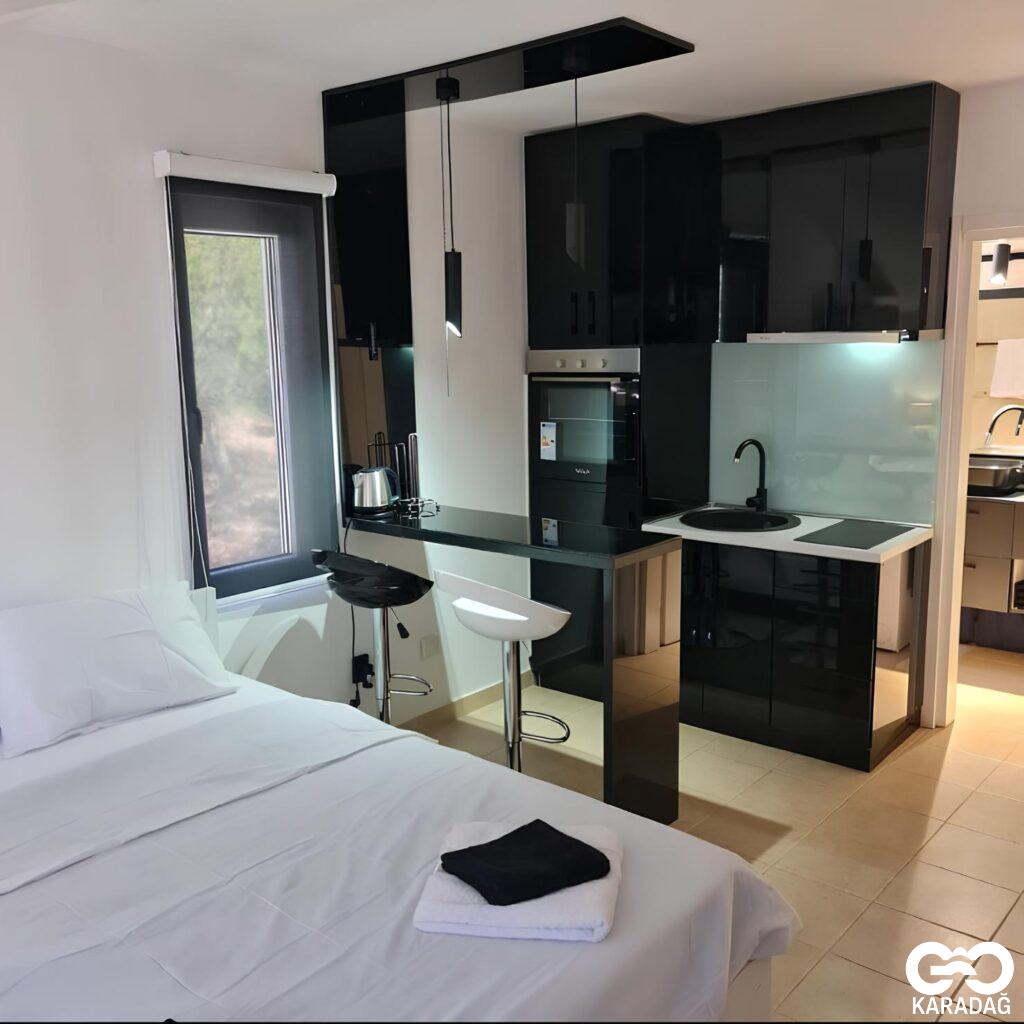 Dilerseniz bu stüdyo daireyi aylık olarak da kiralayabilirsiniz. Bir aylık kira ücreti GoKaradağ okuyucularına özel olarak sadece 400€ dur. Dilerseniz bir ay dilerseniz tüm yıl boyunca daireyi kiralayabilirsiniz.